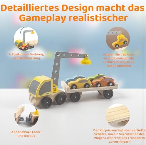 Dieses magnetische Kran-Spielzeug begeistert mit seinem abnehmbaren Trailer und vier bunten Waggons. Der funktionierende Kran ist mit Magneten ausgestattet, die es den Kindern ermöglichen, die Wagen spielerisch zu heben. Die drehbaren Verbindungen des Krans fördern die motorischen Fähigkeiten und die Kreativität der Kleinen. Ideal für Kinder ab 3 Jahren – ein Spielzeug, das nicht nur Spaß macht, sondern auch die Vorstellungskraft anregt.