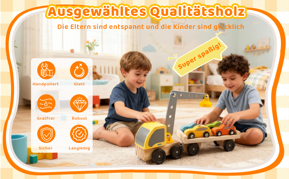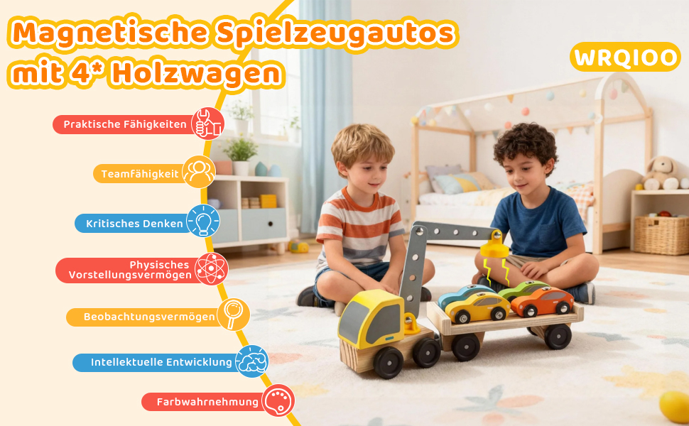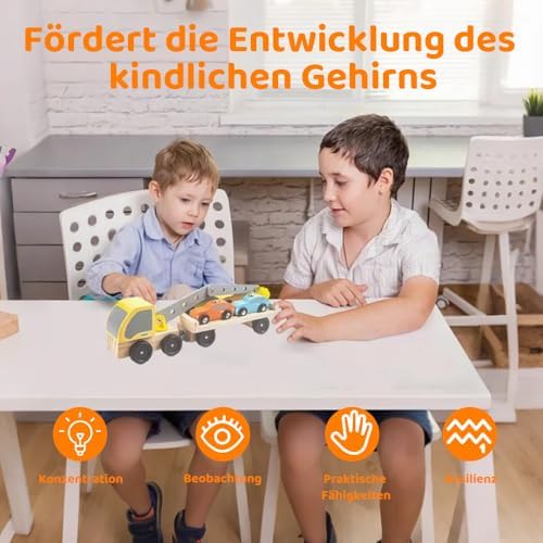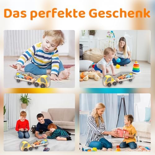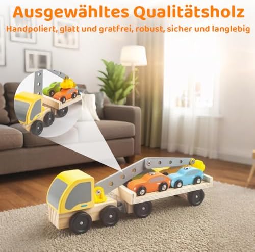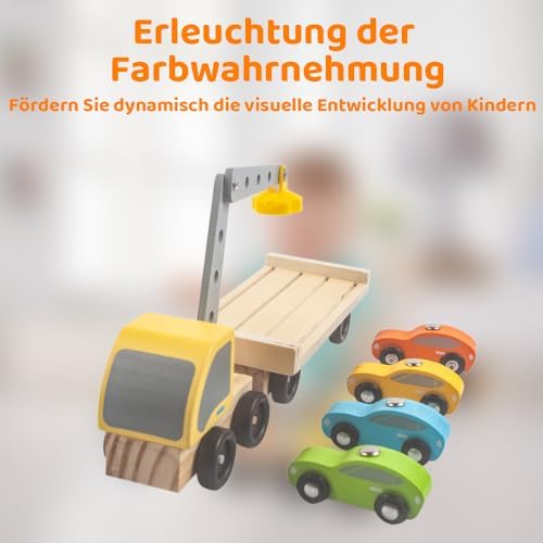 Die vier bunten Autos (gelb, grün, blau und orange) bieten eine dynamische Farbpalette, die die visuelle Entwicklung von Kindern fördert. Das Spielzeug hilft dabei, die Fähigkeit zur Farbkategorisierung und das Grundwissen über Farben zu entwickeln, während gleichzeitig die dynamische Farbwahrnehmung geschult wird. Ein farbenfrohes Erlebnis, das nicht nur spielerisch ist, sondern auch lehrreich.