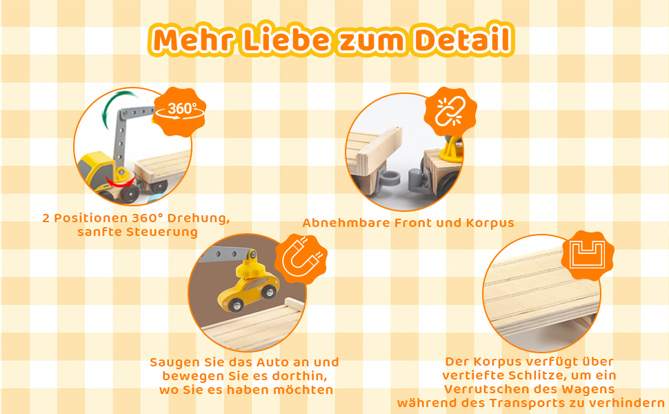 Dieses magnetische Kran-Spielzeug ist sofort spielbereit und erfordert keine Montage. Es eignet sich hervorragend als Geschenk für 3-jährige Jungen und Mädchen, die alles mit Rädern lieben. Durch interaktives Spielen fördert es Teamarbeit, Kommunikation und Geduld. Die abnehmbaren Komponenten des Krans und des Trailers machen die Aufbewahrung einfach und sorgen dafür, dass das Spielzeug jederzeit für neue Abenteuer bereit ist – egal wo Ihr Kind spielt.