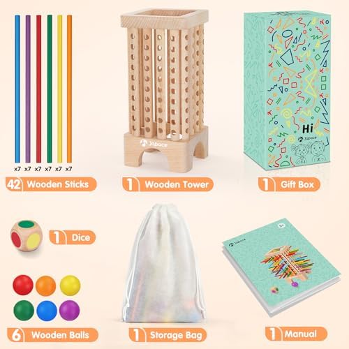 Japace Montessori Holzspielzeug - Bunte 42 Stück Holzstäbchen für Mathematik & Feinmotorik, ideales Familienspiel für KiJapace Montessori Holzspielzeug – Bunte 42 Stück Holzstäbchen für Mathematik & Feinmotorik, ideales Familienspiel für Ki