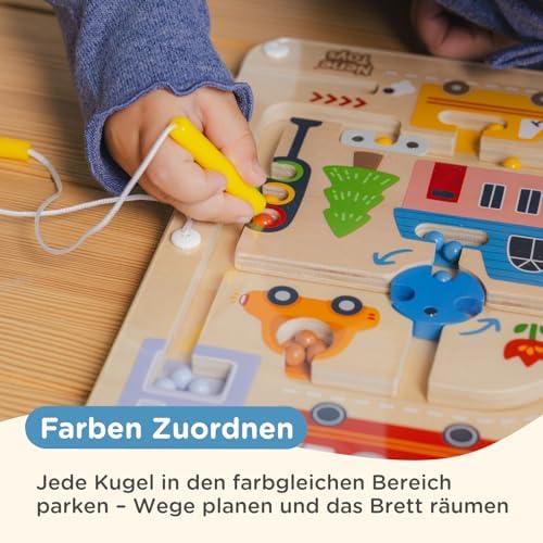 Unser Magnetisches Labyrinth fördert wichtige Fähigkeiten wie Problemlösung, das Planen von Routen, Farbzuordnung und Konzentration. Die Montessori-inspirierte Gestaltung macht es ideal für ruhige Ecken und Lernumgebungen, in denen Kinder spielerisch mit ihrer Umwelt interagieren können.