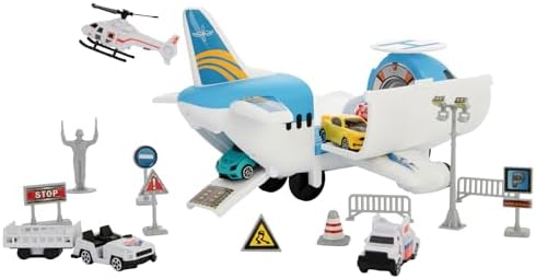 Entdecken Sie die aufregende Welt des Spielens mit dem Teamsterz Metro City Flugzeug-Transporter. Dieses All-in-One-Set ist nicht nur eine Augenweide, sondern auch ein ideales Spielzeug für alle kleinen Transport-Fans. Es beinhaltet ein elegantes Flugzeug, verschiedene Spielzeugautos, einen Hubschrauber und zusätzliches Zubehör, das jede Menge Spielspaß garantiert. Hier können Kinder ihre eigene Flughafenwelt erschaffen und spannende Geschichten vom Bodentransport bis zu Luftabenteuern inszenieren.